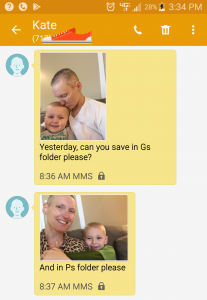 We planned a lot during this time, one of the many things that we had in place was picture folders set up on my phone. She spent some of this morning sending me her favorite pictures to put in specific folders for the kids and us.