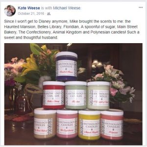 A few days ago I posted about how I got her a surprise and how she asked me if I got it from a vending machine. I realized after I had written about it that I had no idea what the surprise was, but I was curious and wished that I had remembered. Well today I found out when I looked up our memories on Facebook. It was candles that I had purchased for her that resembled scents of Disney. I was so excited to give them to her knowing that she would love them. I even told her that if they were delivered when she was sleeping that I was going to wake her immediately.