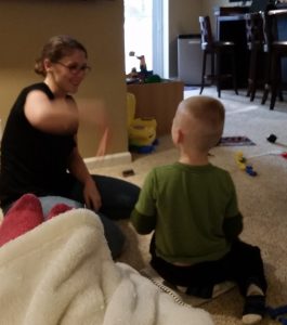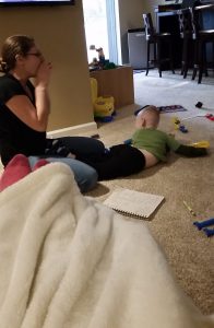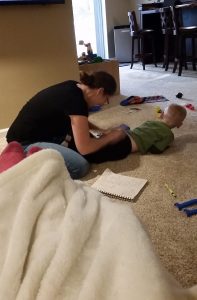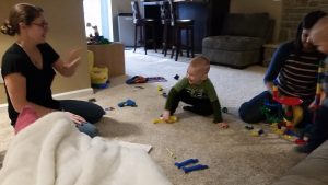 After nap and after her friends had come back we all eventually made our way down to the basement. Her friends had a bunch a goodies for the boys. They played with a bunch of toys and some other things. I remember thinking it was awesome to see the boys having some genuine fun given how hectic things had been.